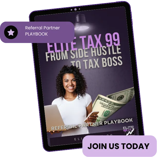 Become an Elite Tax 99 Referral Partner and earn by sharing your link — no experience required.